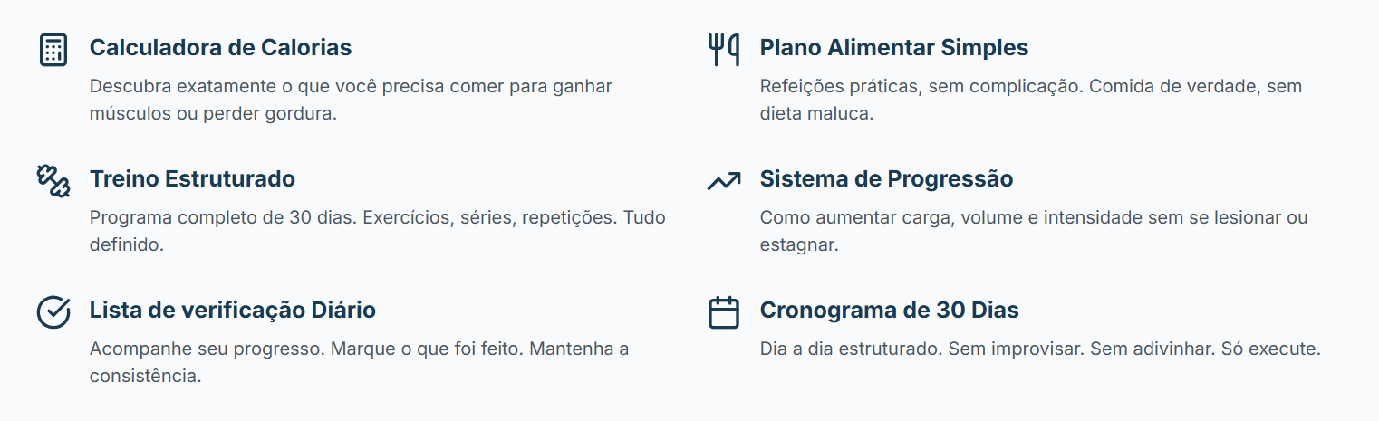Você já treinou. Já tentei dieta. Já tentei “se motivar”. Mas sempre volta ao mesmo lugar. Não é porque você é fraco. É porque você está improvisando. Sem estrutura, sem progressão, sem método. O resultado? Frustração. Tempo perdido. Zero evolução.